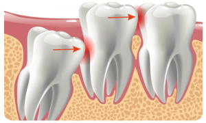 - Önündeki komşu dişe verdiği baskı sonucunda, komşu dişi çürütmesi ihtimaline karşı,